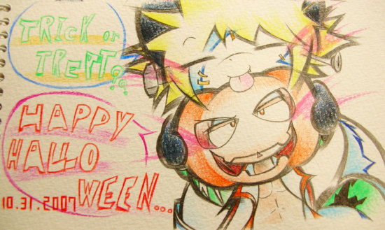 この前言ってた、アナログのハロウィン絵です。6日も遅れてしまいましたね;(スンマセン;