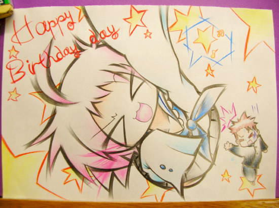 あと絵の方、「happy birthday day ☆」とかなってるけど;dey2つだけど;、なんかあきら様ならノリでこう言いそうと思って書いただけですから;誤解しないで;;;(必死