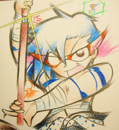 動きのある絵を久々に描きたくなってですね。こういう形に。