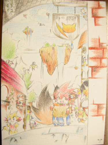 セイジ達の街に色ヌリヌリ。今度はいつもどーり色鉛筆。