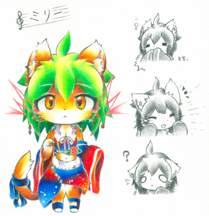 あと今回一番初めに描いた仔、ミリーはひげを付けるはずだったのに付けてなかったのでこの際に手直し&衣装も少し変更しちゃいました。