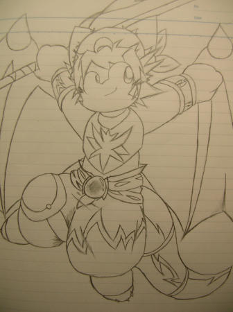 絵じゃぁ分からないだろうけど、とってもでかいです。188あります。14のくせに;。まぁ、セイジとサクラ、あとジオ(次出ます)の3人乗せて普通に飛んでますからね。力持ちです。のほほん系です。