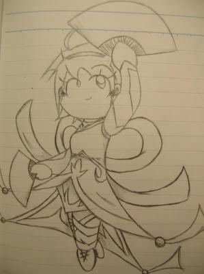 14歳ではありえないほど体がデカくて、力自慢なので、さらに自分よりもでかい槍を使って戦う。足が遅いのが難点。しかし空からの攻撃が十八番。空では軽快な動きを見せる。