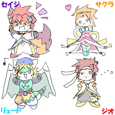 この3人+セイジは、昔っから同じ村で育ってきたので仲がいいんです。よくセイジとジオはつっかかりますが、仲いいです。ケンカしても、「男の成人式しただけだもんな?」「おぅ。」で済ませます。(汗