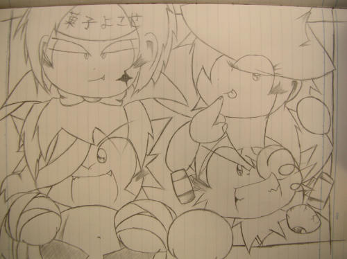 オリキャラ・ガキ4人衆を色つけてみました。超簡単ですけど^^;。まぁ、これで色見分けてください。前の絵を。